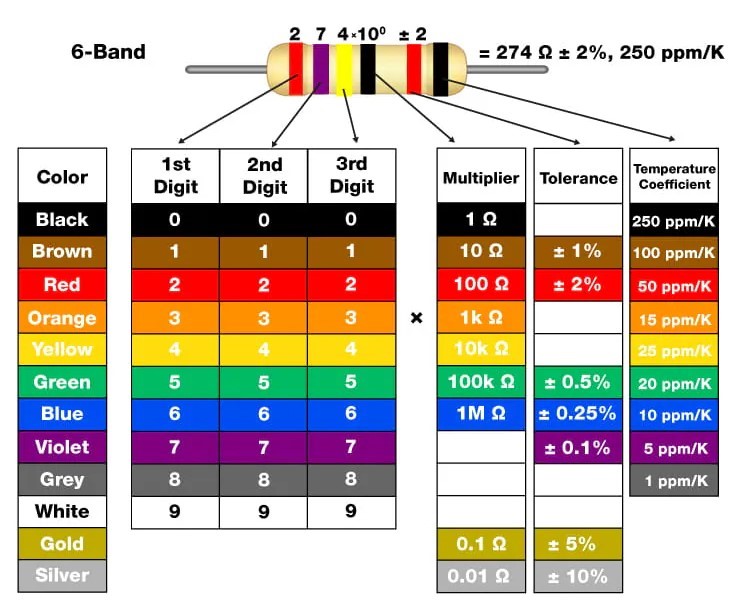 - Temperature coefficient: It indicates how much the resistance value of the resistor will change with respect to changes in temperature.