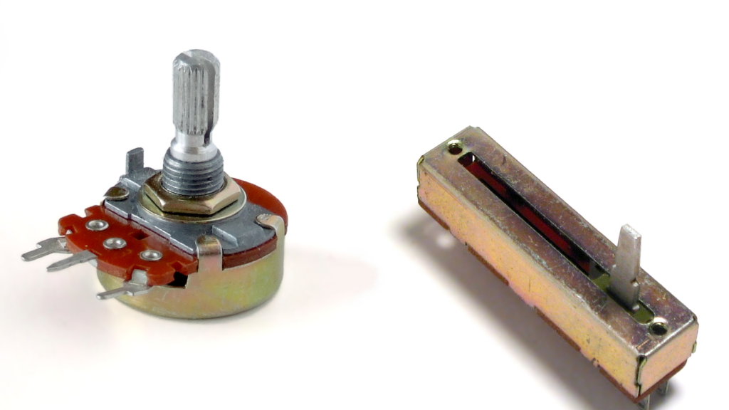 With linear potentiometers, the resistance and output are varied linearly in constant steps, depending on the location of the wiper on the resistive component. The terminal connected to the sliding is connected to one end of the output circuit, and one of the terminals of the resistor is connected to the other end of the output circuit.